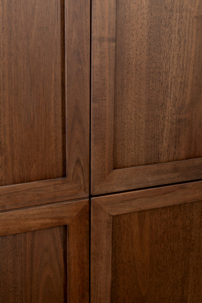 La nouvelle cuisine Atlante+Virtus naît de la rencontre entre l’acier vintage brossé, au caractère affirmé et contemporain, et la chaleur du bois Noyer Tabac du lambris Atlante.